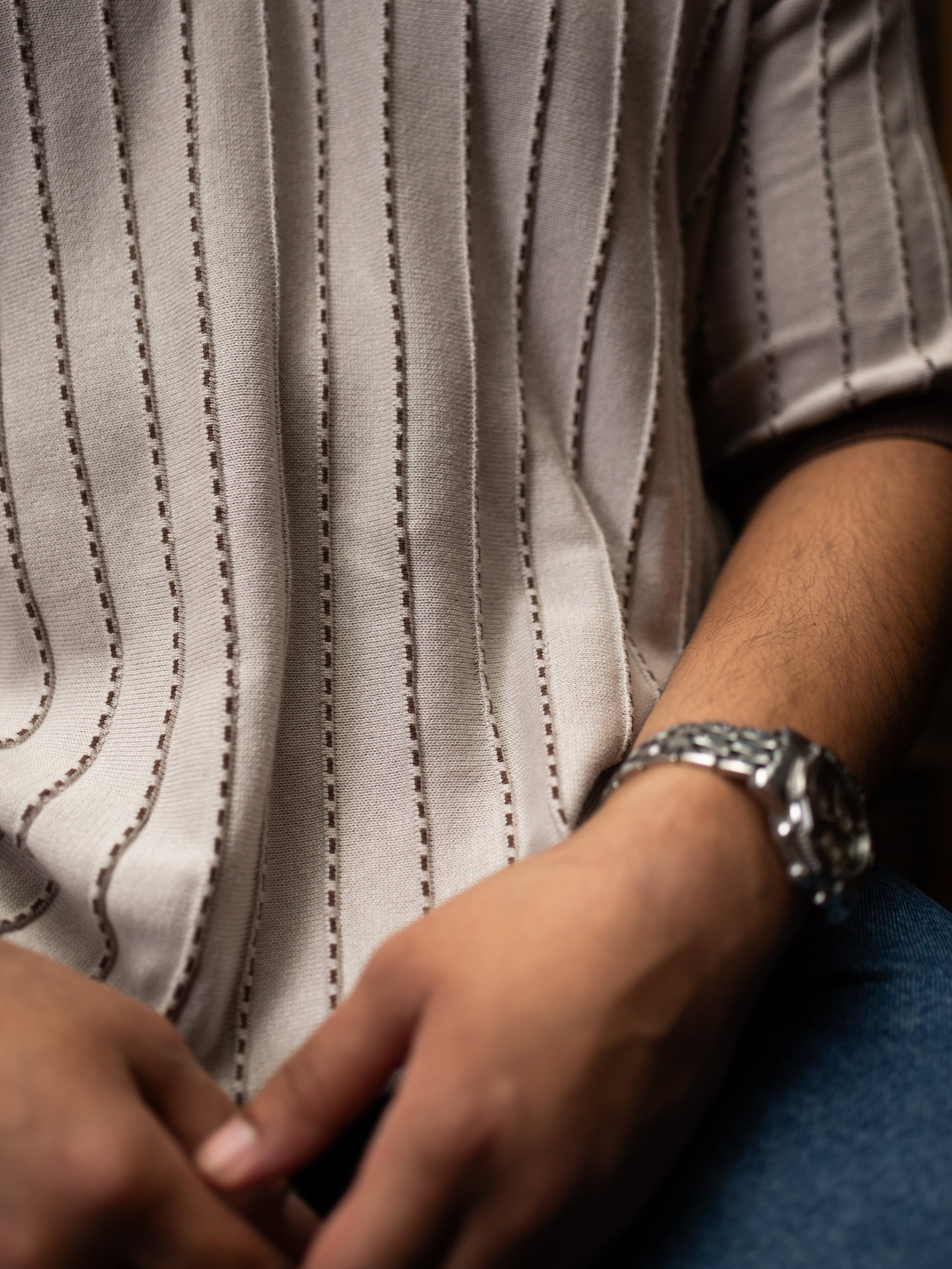 A modern twist on a timeless classic, The Unisex Collar Code Polo brings understated sophistication to your everyday rotation. Made from 100% premium cotton, the knit fabric feels soft yet structured, giving you all-day comfort with lasting durability. Designed with a contrast collar and sleeve edges in deep brown, the polo’s textured stripe pattern adds depth without being loud — subtle detailing that speaks for itself. The relaxed silhouette makes it easy to wear tucked, layered, or loose, pairing effortlessly with denim, trousers, or shorts. Minimal yet expressive, The Collar Code Polo is built for those who value quiet confidence and refined style.
